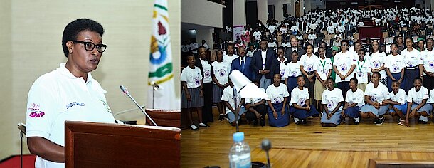 The Speaker of the Parliament, Lower House who was the Chief Guest, Honorable Mukabalisa Donatille said: ‘’I want to call upon everyone present here and those who are following us especially parents, teachers, children and the youth to continue speaking up and report child defilement perpetrators, to fight against them and responding to their effects in order to protect children, preventing and responding to teenage pregnancies.’