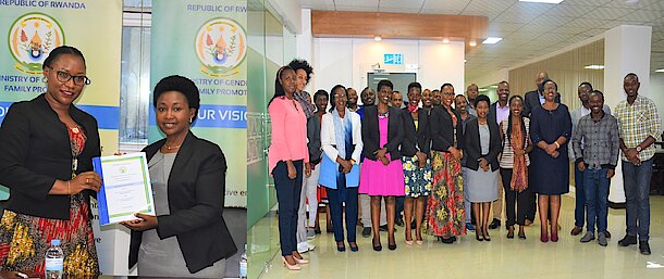 The handover was witnessed by the Permanent Secretary in the Ministry of Gender and Family Promotion Mrs. Assumpta INGABIRE, Heads and Staff of the Ministry's affiliated institutions (National Early Childhood Development Program, National Women's Council and National Commission for Children in addition to the Gender Monitoring Office that is under the Prime Minister's Office).
