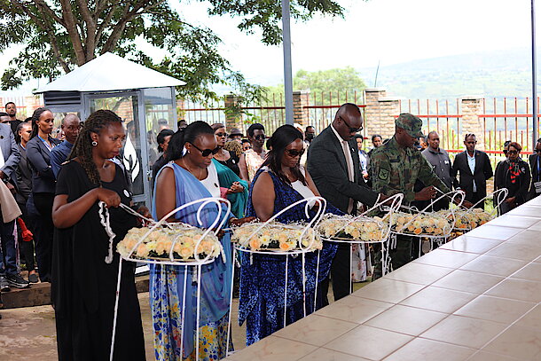 Speaking at the event, Minister Uwimana said the commemoration serves to honour innocent lives lost during the Genocide against the Tutsi and to express solidarity with families whose loved ones are buried at the memorial, and encouraged survivors to remain resilient and to continue striving for a dignified future.